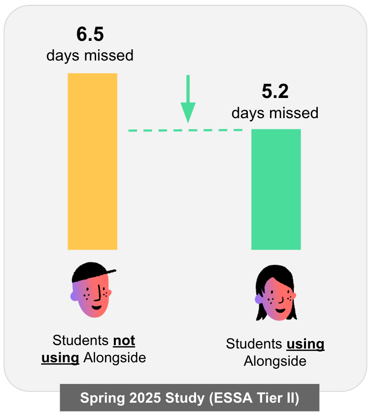 In a study conducted with Instructure and a TX school district, students using Alongside showed a statistically significant 2% higher ADA than students who did not use the platform.